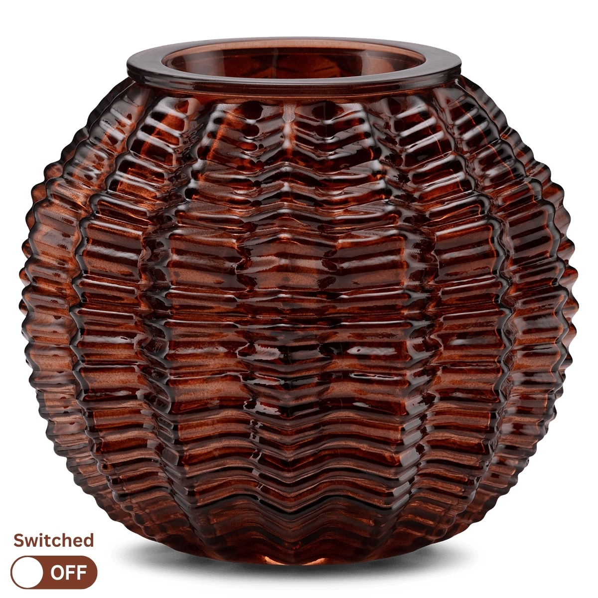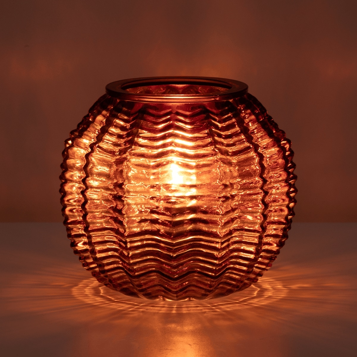 Light radiates through geometric grooved glass, sending waves of light play in all directions when lit.