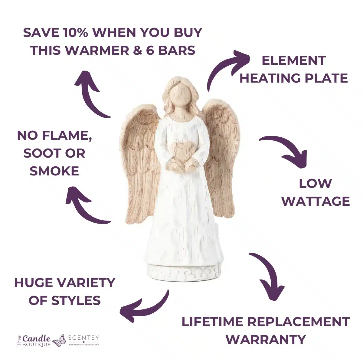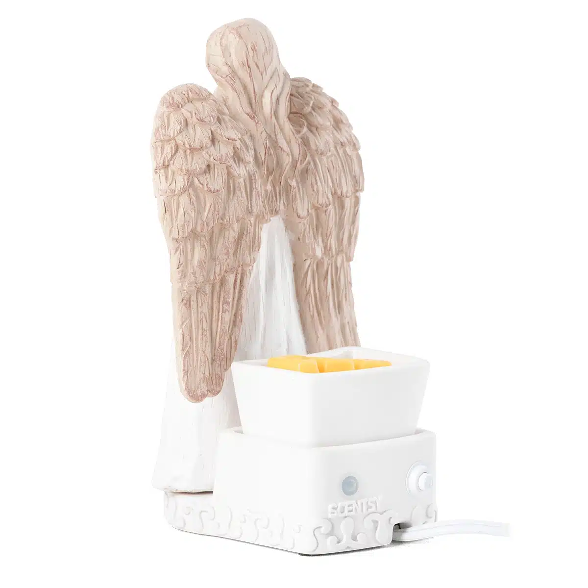 A symbol of peace and love, this angelic Warmer is hand painted and intricately detailed to give the appearance of carved wood.