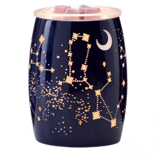 Bring the magic of the night sky into your home with the Constellations Scentsy Warmer. This deep dark blue warmer features intricate star constellations that let light shine through, creating a captivating celestial display. Perfect for stargazers and dreamers, it fills your space with a tranquil and enchanting glow while enhancing your favourite Scentsy fragrances. Embrace the wonder of the cosmos and add a touch of celestial charm to your decor with the Constellations Scentsy Warmer.Dimensions: 17 cm tallWattage: 25WMaterial: Ceramic