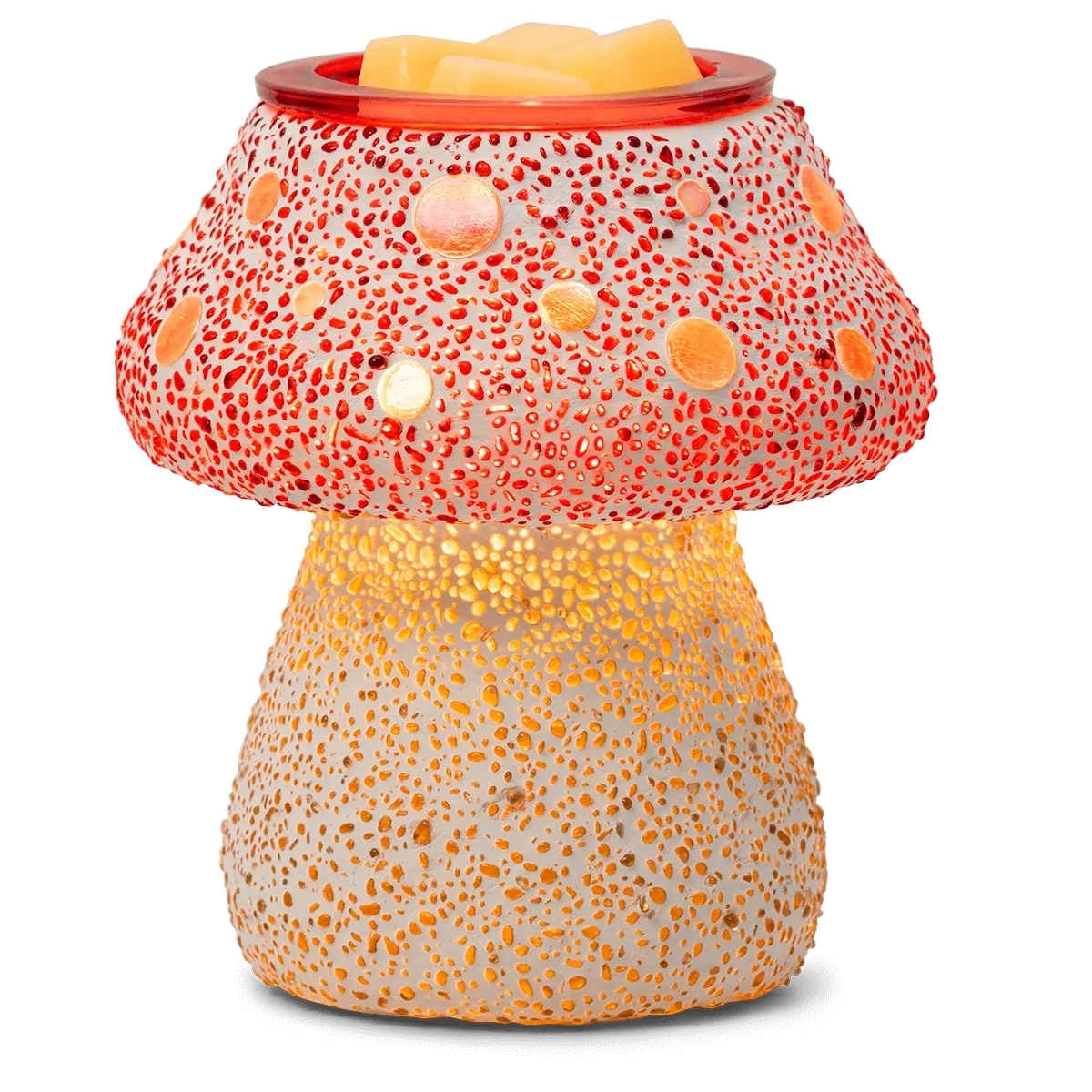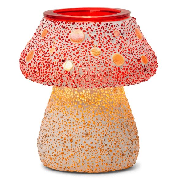 How does your garden glow? A trendy mushroom with a unique, handmade mosaic pattern shines dappled light on nearby surfaces when lit.