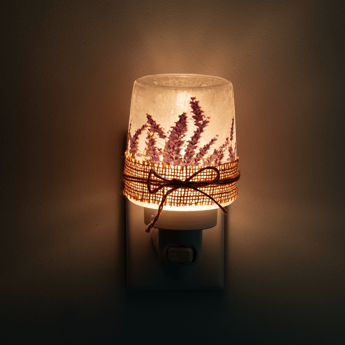Detailed to perfection: Frosted glass is accented with a burlap swatch and tied off with a jute rope.